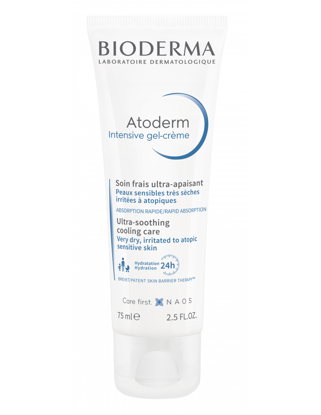BIODERMA Atoderm Intensive Gel-Crème es un tratamiento hidratante y calmante diseñado para pieles sensibles, secas, muy secas o atópicas, ideal para bebés (excepto prematuros), niños y adultos. Este gel-crema ultraligero alivia la irritación, el picor y la sensación de tirantez, restaurando la barrera cutánea gracias a su fórmula con el complejo Lipigenium™ y el patente Skin Barrier Therapy™. Proporciona una hidratación intensa de 24 horas, con una textura fresca y no pegajosa que se absorbe rápidamente. Hipoalergénico, sin perfume ni parabenos, es perfecto para uso diario, ofreciendo confort inmediato y una piel suave y protegida frente a agresiones externas.