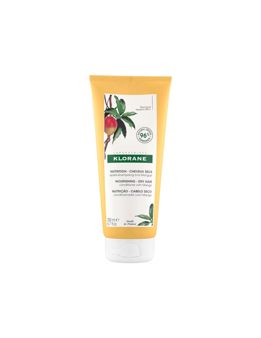 KLORANE Acondicionador al Mango es un bálsamo nutritivo especialmente formulado para cabello seco, apagado o deshidratado que necesita nutrición intensa sin apelmazar la fibra capilar. Enriquecido con manteca de mango (Mangifera indica), rica en ácidos grasos esenciales, este acondicionador ayuda a nutrir profundamente la fibra capilar, facilitar el desenredado y proteger contra la sequedad, aportando suavidad, flexibilidad y un brillo natural y saludable. Su textura ligera y aroma afrutado hacen que el cabello quede suave, fácil de peinar y con un acabado luminoso tras cada uso, siendo adecuado incluso para toda la familia a partir de 3 años.