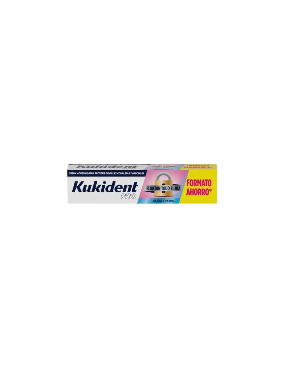 Kukident Pro Sabor Fresco es una crema adhesiva premium diseñada para proporcionar una fijación fuerte y duradera a prótesis dentales completas o parciales, garantizando comodidad y confianza durante todo el día. Con un agradable sabor a menta fresca, esta crema estabiliza la dentadura, evita el deslizamiento y ofrece un efecto sellado que bloquea hasta cinco veces más partículas de comida, protegiendo contra irritaciones y la acumulación de restos. Ideal para usuarios de prótesis que buscan disfrutar de sus comidas favoritas sin preocupaciones, Kukident Pro mejora la mordida, mantiene la dentadura segura y proporciona una sensación de frescura bucal, siendo una solución confiable para una higiene bucal óptima y un ajuste perfecto.