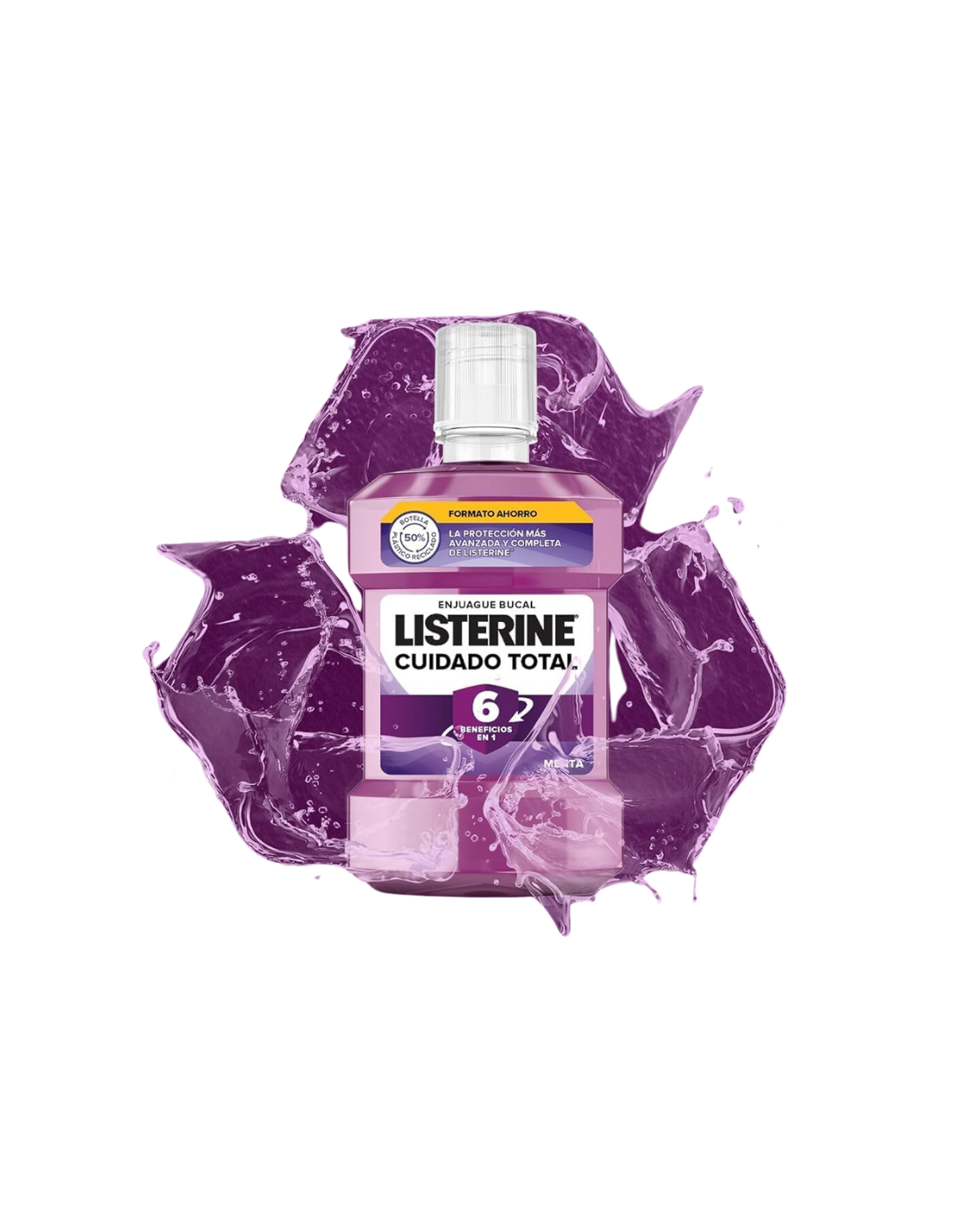 LISTERINE Cuidado Total mejora la higiene bucal y ha demostrado proporcionar 6 beneficios en 1. La protección más avanzada y completa para unos dientes fuertes. 12 horas de protección contra gérmenes. Fortalece los dientes. Ayuda a prevenir la gingivitis. Protege de las caries. Reduce la placa. Proporciona un aliento fresco.