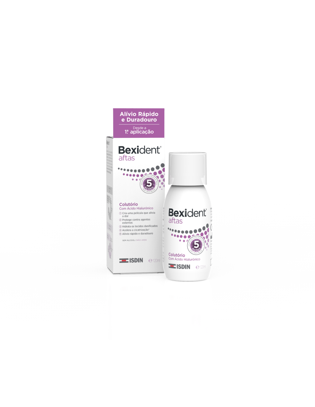 Bexident Aftas Colutorio 120ml para las heridas de la boca, es un colutorio con ácido hialurónico alivia de forma inmediata y duradera el dolor de las heridas, además de ayudar a su cicatrización.