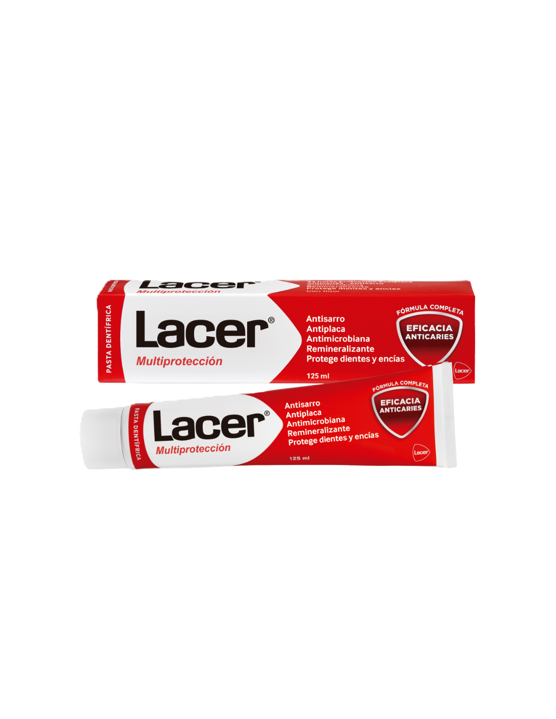 LACER Pasta Dentífrica es una pasta dental de uso diario formulada para ofrecer una protección bucodental integral que ayuda a mantener dientes y encías sanos. Su combinación de ingredientes actúa eficazmente contra la placa bacteriana, previene la caries, fortalece el esmalte y la dentina, y mantiene una sensación de limpieza y frescor tras cada cepillado. Con un alto contenido de fluoruro (2 500 ppm) que favorece la remineralización dental y un agente antimicrobiano que contribuye al mantenimiento del equilibrio del microbioma oral, esta pasta es adecuada para adultos y adolescentes mayores de 12 años como parte de una higiene bucal completa y eficaz.