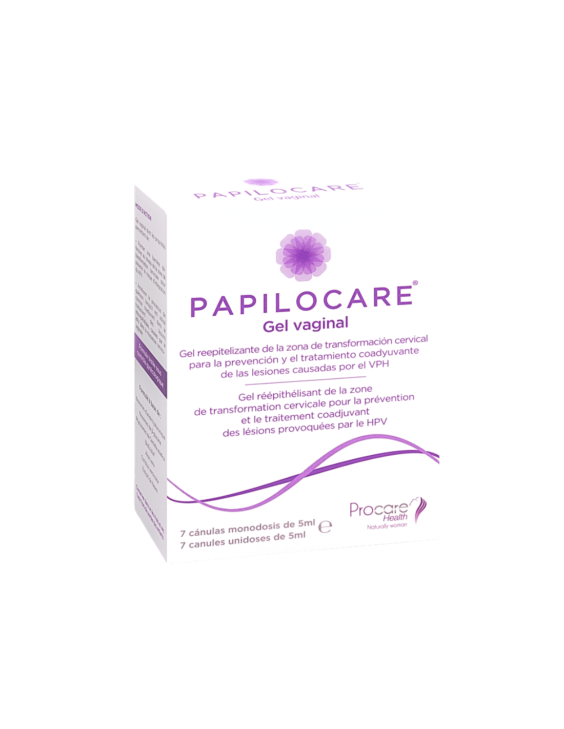 PAPILOCARE Gel Vaginal Cánulas es un gel íntimo reparador y preventivo para el tratamiento adyuvante de lesiones inducidas por el virus del papiloma humano (VPH), ideal para mujeres adultas que buscan un cuidado vaginal natural para reepitelizar la mucosa cervicovaginal, aliviar síntomas como picor, irritación o sequedad, y promover la salud íntima. Este gel actúa como una barrera protectora que favorece la regeneración celular, reduce la inflamación y equilibra la flora vaginal, siendo especialmente útil en casos de VPH de bajo riesgo o como coadyuvante en tratamientos ginecológicos. Este producto es perfecto para pieles sensibles, integrándose fácilmente en rutinas de cuidado íntimo para un alivio efectivo y una prevención natural de recurrencias.