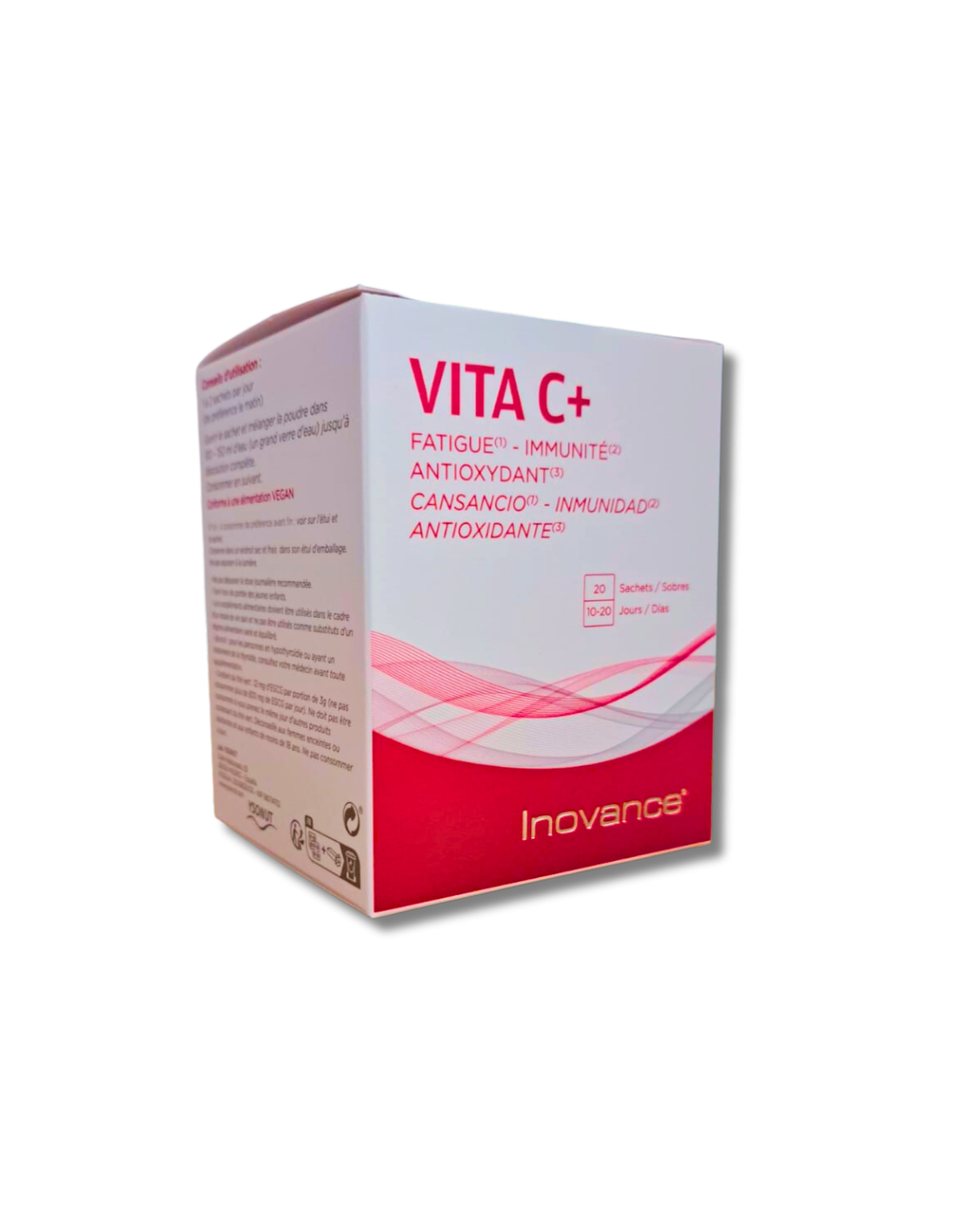 INOVANCE VITA C+ 20 Sobres incluye una composición completa que combina vitamina C, minerales y otros nutrientes esenciales. Esta fórmula avanzada te ayuda a combatir el cansancio, reforzar tu sistema inmunológico y protegerte de los radicales libres. Todo esto en un práctico sobre fácil de llevar.