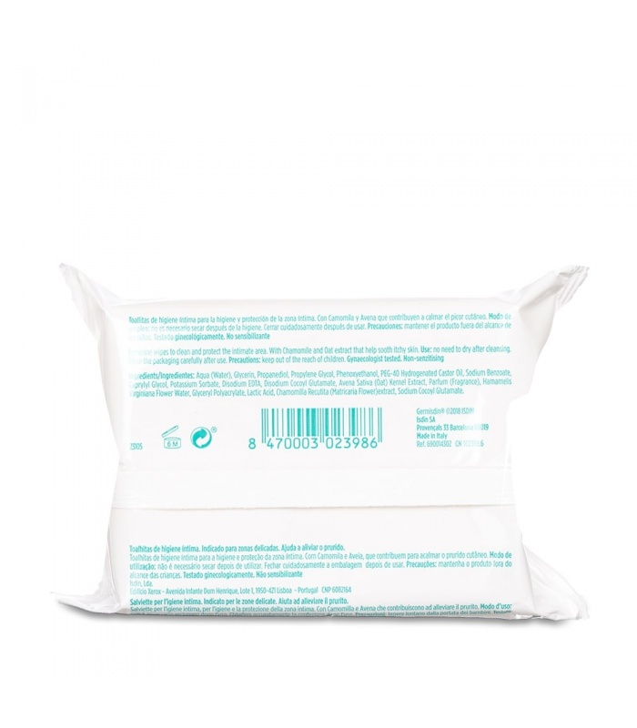 Germisdin Toallitas Higiene Intima 20 Unidades, son toallitas para la higiene personal diaria. Suaves y refrescantes. Higiene vulvar y perineal. Con camomila y avena, que contribuyen a disminuir la sensación de irritación cutánea.