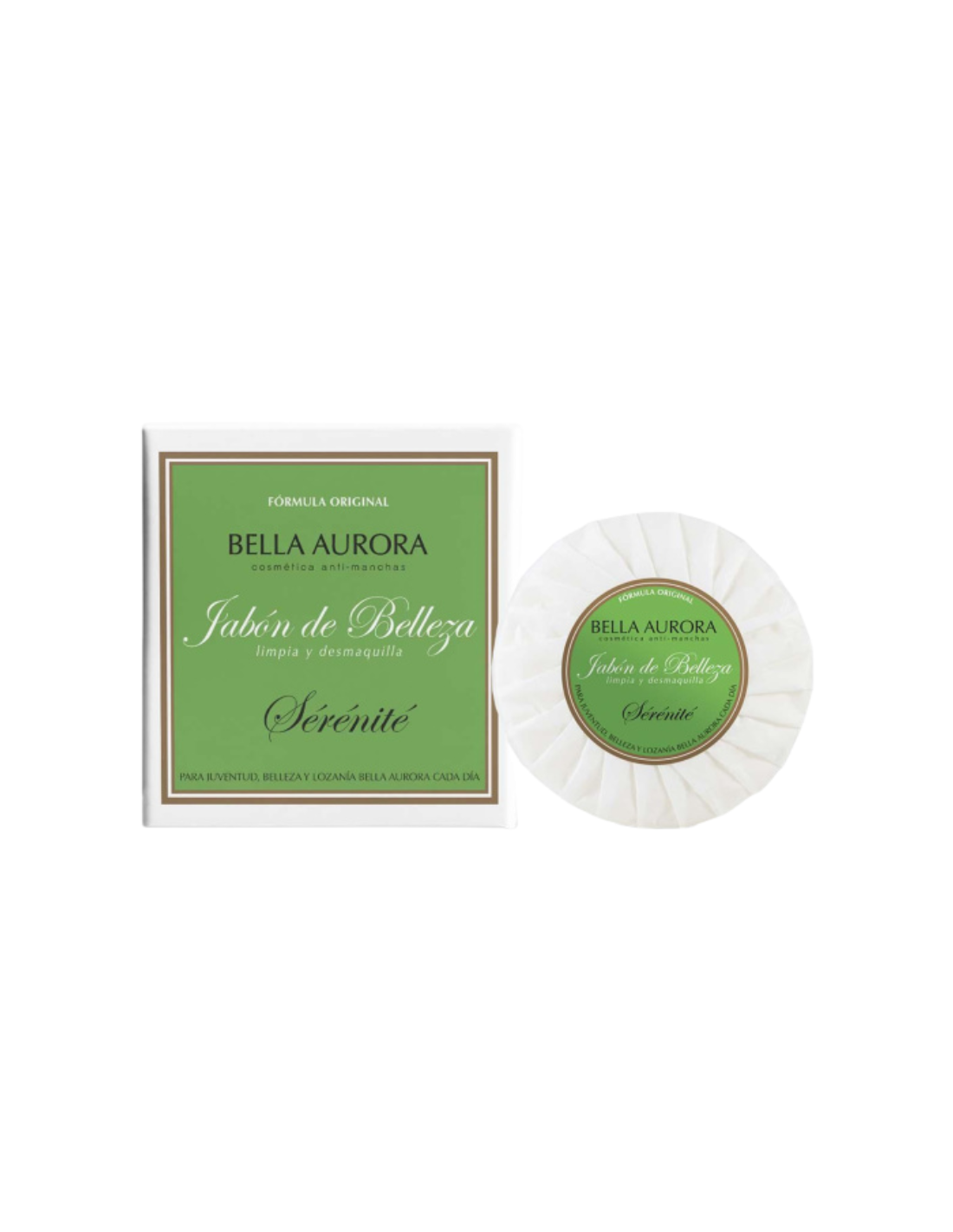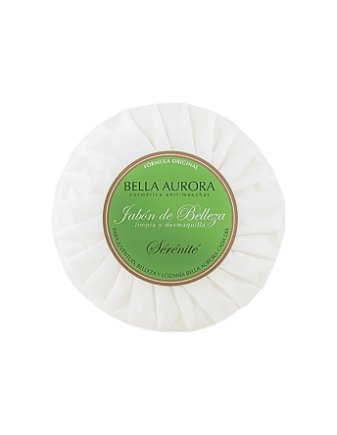 BELLA AURORA Jabón de Belleza Serenité es un jabón en pastilla con la fórmula original y receta tradicional de la marca, diseñado para una limpieza facial diaria que elimina impurezas, restos de contaminación y maquillaje con la máxima suavidad. Purifica los poros en profundidad sin agredir la barrera cutánea, preparando la piel para una mejor absorción de sérums y cremas posteriores, y dejando un acabado fresco, sedoso y equilibrado sin esa molesta sensación de tirantez. Transforma el ritual de limpieza en un momento de calma y bienestar. Apto para todo tipo de piel, incluso las más delicadas, este jabón tradicional, ideal para el rostro, manos y cuerpo, promueve una tez luminosa y revitalizada desde el primer uso.