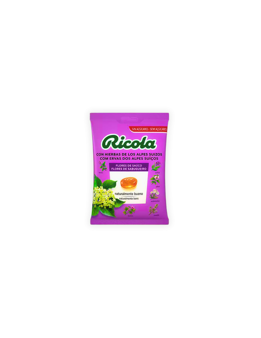 RICOLA Bolsa Caramelos Sin Azúcar Sabor Saúco combina la flor de saúco, deliciosa, dulce y afrutada con la eficaz mezcla de 13 hierbas. Es una opción deliciosa y refrescante que alivia la garganta. Disfruta de un sabor delicioso y cuida de tu bienestar.