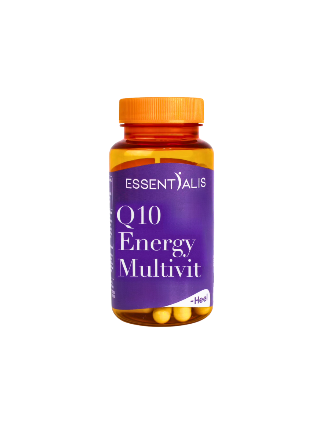 ESSENTIALIS Q10 Energy Multivit Cápsulas incluye por cápsula: mezcla polivitamínica: Ácido ascórbico (Vit. C), Carbonato de calcio (Calcio), Óxido de magnesio (Magnesio), Acetato de DL-α tocoferilo (Vit. E), Nicotinamida (Niacina/Vit. B3), Óxido de zinc (Zinc), D-pantotenato cálcico (Ác. Pantoténico/Vit. B5), Fumarato de hierro (Hierro), Riboflavina (Vit. B2), Clorhidrato de piridoxina (Vit. B6), Sulfato de manganeso (Manganeso), Tiamina mononitrato (Tiamina/Vit. B1), Sulfato cúprico (Cobre), Acetato de retinilo (Vit. A), Ácido pteroilmonoglutámico (Ác. Fólico), D-biotina (Biotina), Yoduro de potasio (Yodo), Selenito sódico (Selenio), Molibdato sódico (Molibdeno), Colecalciferol (Vit. D3), Cianocobalamina (Vit. B12), agente de recubrimiento: Hidroxipropilmetilcelulosa, Coenzima Q10, Maltodextrina, antiaglomerantes: Dióxido de silicio y Sales magnésicas de ácido grasos, Extracto seco de Pimienta negra (Piper nigrum L., fruto), colorante: óxido de hierro amarillo.