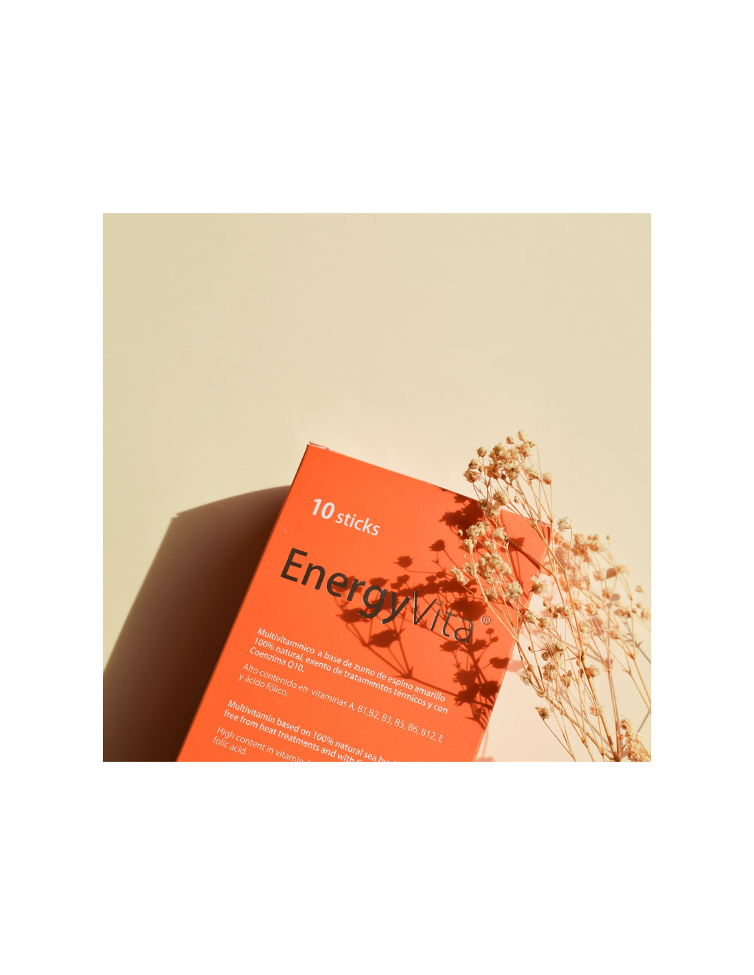 VITAE EnergyVita Sticks es un complemento alimenticio multivitamínico concentrado de origen natural diseñado para aportar energía, vitalidad y apoyo al sistema inmunitario en momentos de cansancio físico o mental. Su fórmula a base de espino amarillo, calabaza y coenzima Q10 proporciona un impulso revitalizante que contribuye al metabolismo energético y ayuda a reducir la fatiga, siendo ideal en épocas de alta demanda, astenia estacional o recuperación. Su formato en sticks facilita una toma cómoda y rápida, permitiendo mantener un nivel óptimo de energía en el día a día de forma práctica.