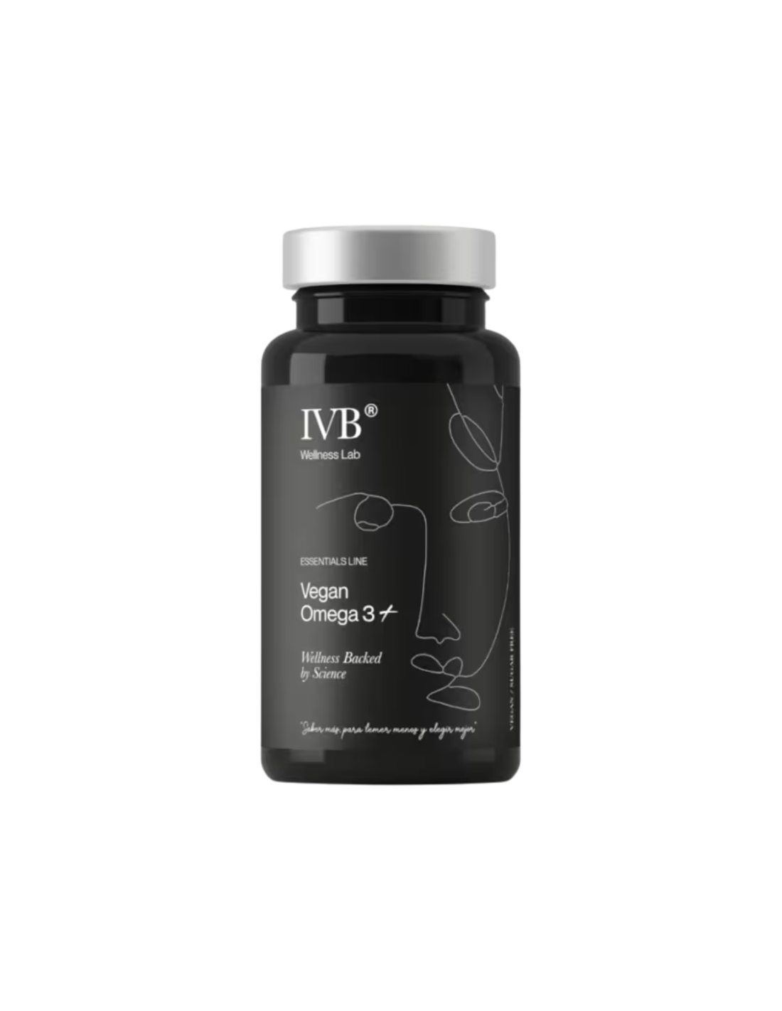 IVB Vegan Omega 3+ Cápsulas es un complemento alimenticio de origen 100% vegetal y sostenible, formulado para aportar una fuente equilibrada de ácidos grasos esenciales Omega-3 (EPA y DHA) procedentes de microalgas, apto tanto para personas que siguen dietas veganas o vegetarianas como para quienes desean evitar productos de origen marino. Su perfil de omega-3 contribuye al mantenimiento normal de la función cardíaca, cerebral y visual, así como al equilibrio del sistema inmunitario, apoya la protección frente al daño oxidativo gracias a la presencia de vitamina E natural. Estas cápsulas son ideales para cubrir las necesidades diarias de EPA y DHA de forma limpia, sin olor a pescado y con certificaciones de calidad que garantizan pureza, trazabilidad y altos estándares de producción.