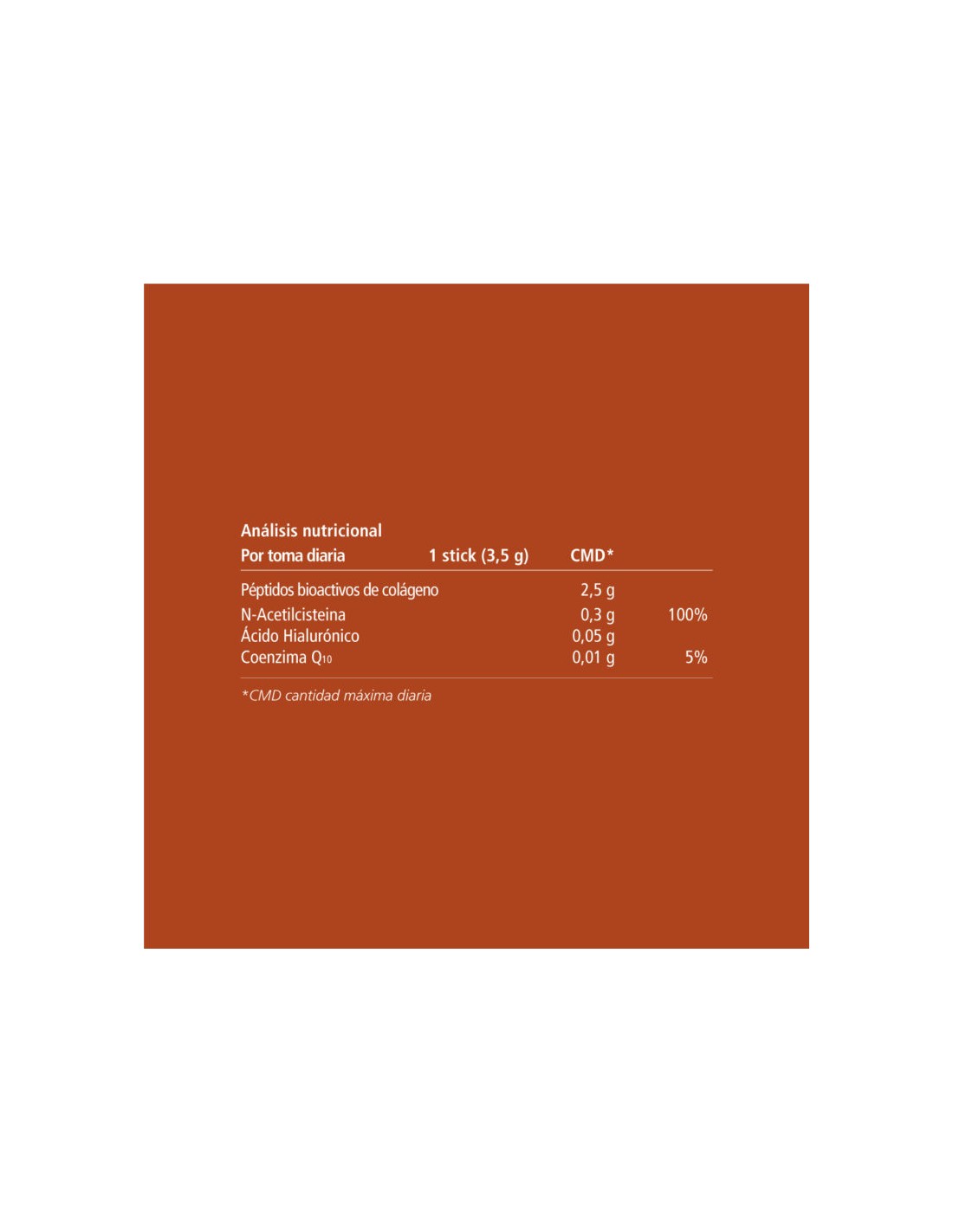 Disuelve el contenido de 1 stick en un vaso de agua o zumo (200 ml) y mezcla bien hasta su completa disolución. Toma 1 stick al día, preferiblemente con una comida para facilitar la absorción. Para obtener un efecto antioxidante visible, se recomienda un uso continuado durante al menos 14 días, aunque los beneficios pueden notarse en 5-7 días. En casos de problemas musculoesqueléticos crónicos, la suplementación puede extenderse hasta 6 meses si es necesario. No excedas la dosis diaria recomendada y combina con una dieta equilibrada. Guarda el envase en un lugar fresco, seco y protegido de la luz solar, cerrándolo bien tras cada uso.