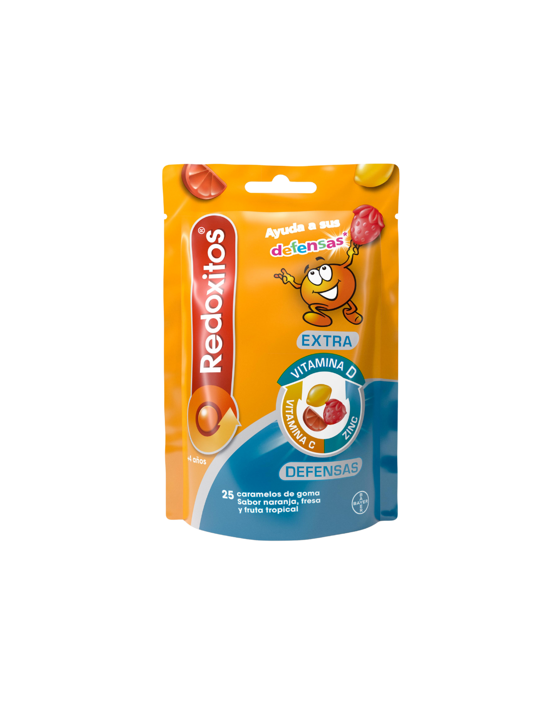 Redoxitos Extra Defensas Caramelos de Goma es un complemento alimenticio en forma de gominolas diseñado para fortalecer el sistema inmunitario de niños a partir de 4 años, ayudándolos a mantenerse fuertes frente a resfriados, cambios estacionales o entornos escolares. Con una fórmula que combina vitamina C, vitamina D y zinc, estas gominolas de agradable sabor a naranja, fresa y limón apoyan las defensas naturales, protegen las células del daño oxidativo y contribuyen al crecimiento óseo normal. Sin gluten, lactosa ni colorantes artificiales, este envase de 25 caramelos es ideal para un cuidado diario divertido y saludable que los niños disfrutarán.