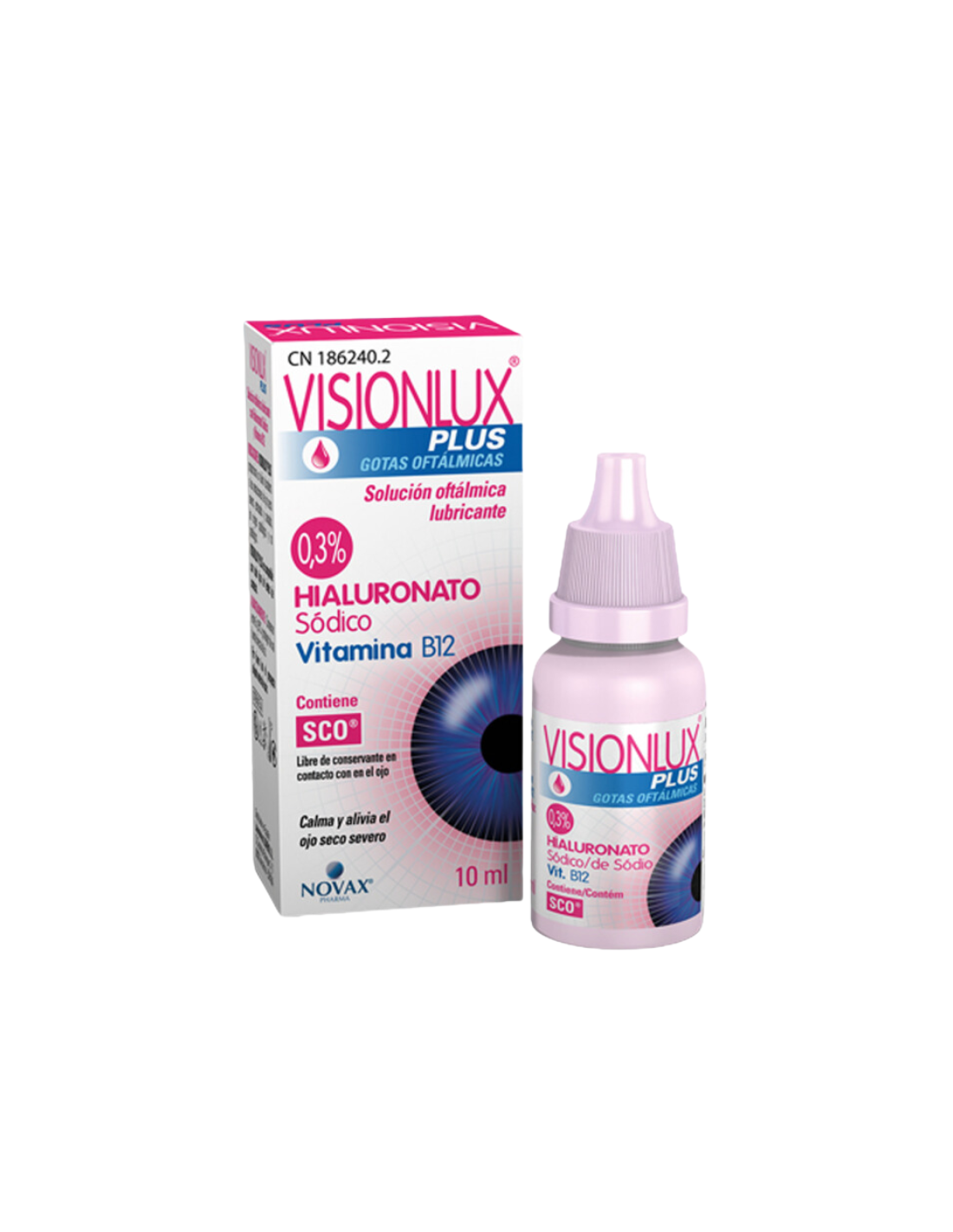 VISIONLUX Plus Gotas Oftálmicas es una solución oftálmica refrescante, revitalizante y lubricante. Ayuda a mantener la superficie ocular en buenas condiciones fisiológicas. Tiene propiedades antioxidantes, protegiendo así la superficie ocular del daño inducido por las especies reactivas de oxígeno (ROS). Por tanto, es un factor esencial en el mantenimiento de una superficie ocular saludable.