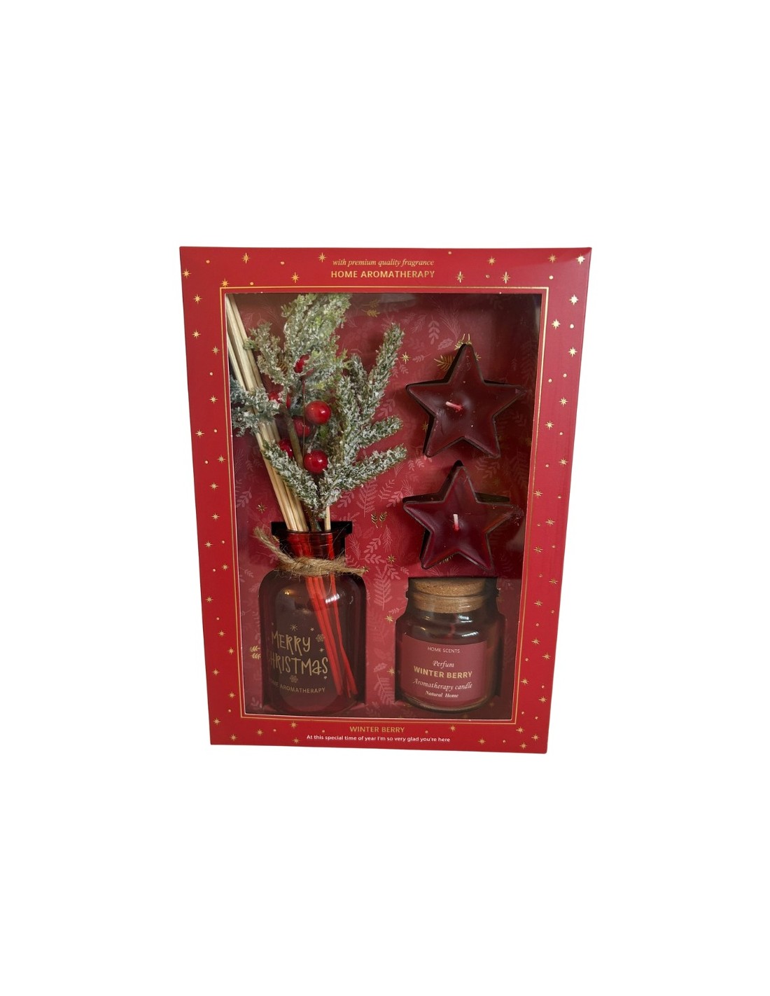 Envuelve tu hogar en el aroma dulce y festivo de las bayas de invierno con este pack de lujo. La combinación perfecta de fragancia premium y decoración temática.