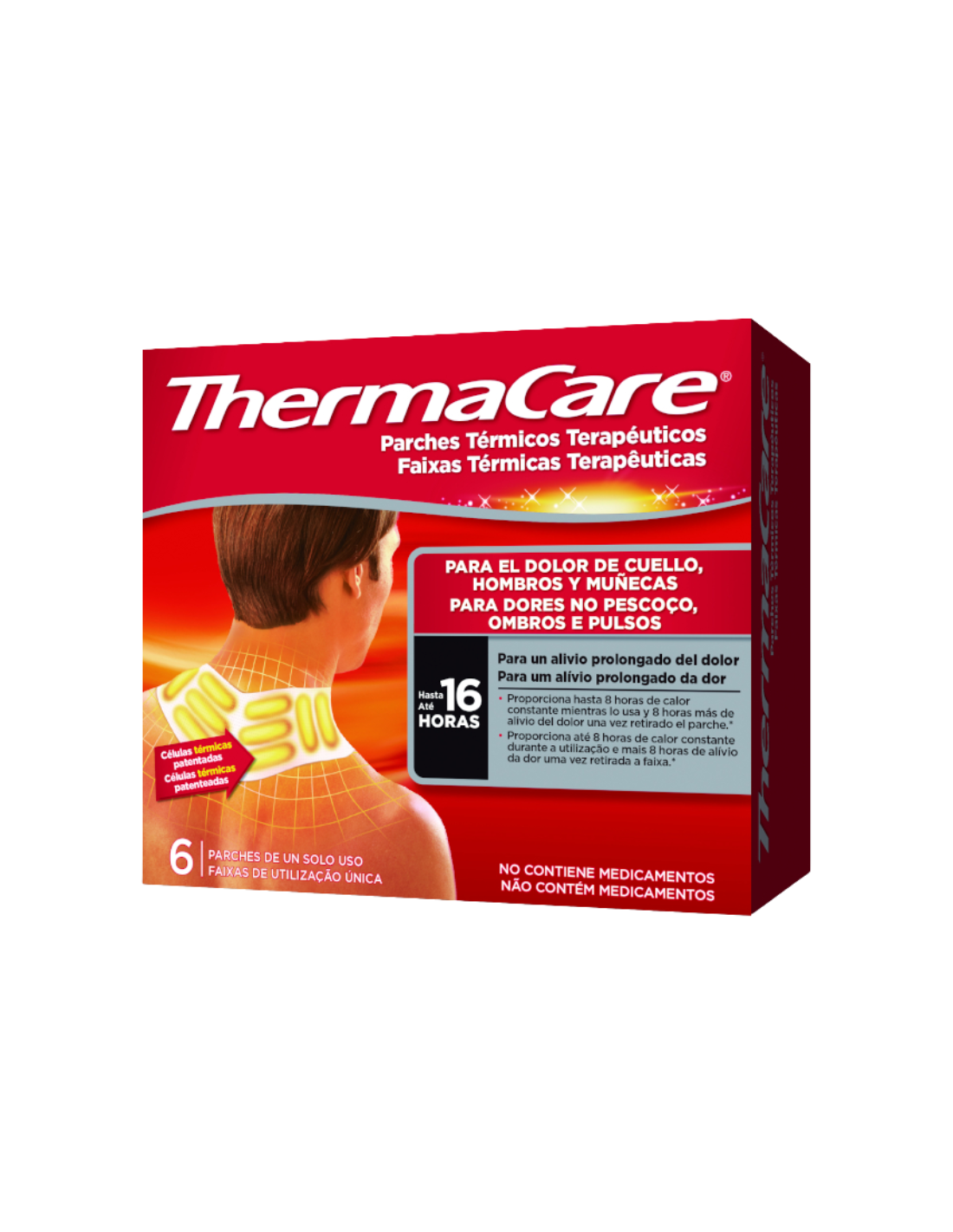 THERMACARE Parches Térmicos Terapéuticos Cuello, Hombros y Muñecas son parches autocalentables diseñados para aliviar el dolor muscular y la rigidez en zonas específicas del cuerpo mediante una terapia de calor constante y profundo. Proporcionan hasta 8 horas de calor terapéutico continuo que ayuda a relajar los músculos, mejorar la circulación sanguínea y reducir molestias derivadas de tensiones, contracturas o sobrecargas. Su diseño ergonómico permite adaptarse cómodamente a áreas como el cuello, los hombros y las muñecas, ofreciendo una solución eficaz, discreta y sin necesidad de medicamentos para el alivio del dolor diario.