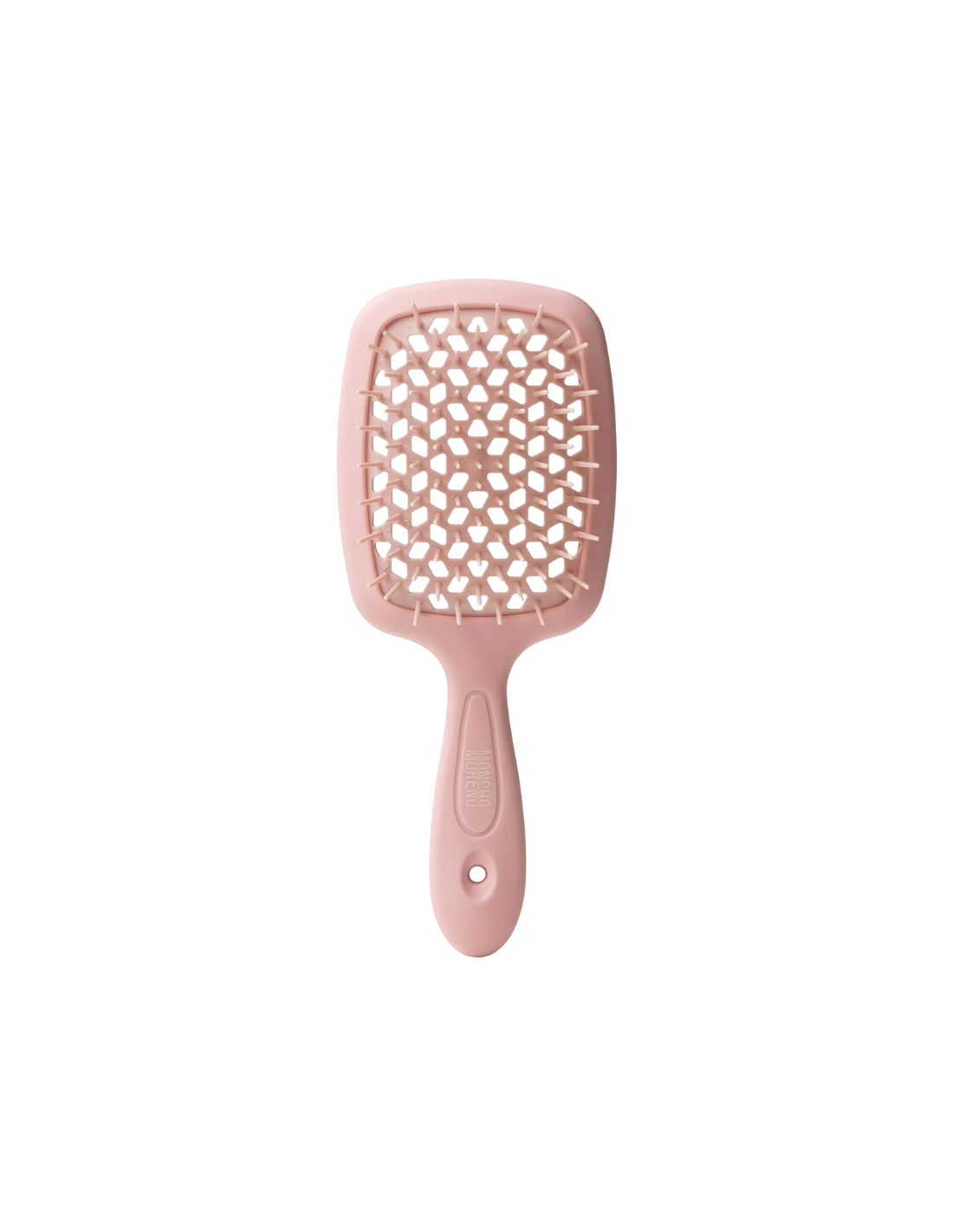 MONCHO MORENO Magic Unraveller Peine Rosa es un cepillo específico para desenredar el cabello más enredado, especialmente cuando está mojado, evitando tirones, roturas y electricidad estática. Gracias a sus púas gruesas, cilíndricas y con terminación redondeada, respeta la fibra capilar y no irrita el cuero cabelludo, haciendo que el desenredado sea suave y eficaz. Puede utilizarse en cabello seco o húmedo, incluso bajo la ducha, y es perfecto para aplicar cremas, acondicionadores o tratamientos desenredantes de forma rápida y armoniosa. Ideal para todo tipo de cabellos, este cepillo ayuda a minimizar el daño mecánico y facilita el peinado diario con un diseño atractivo en color rosa.
