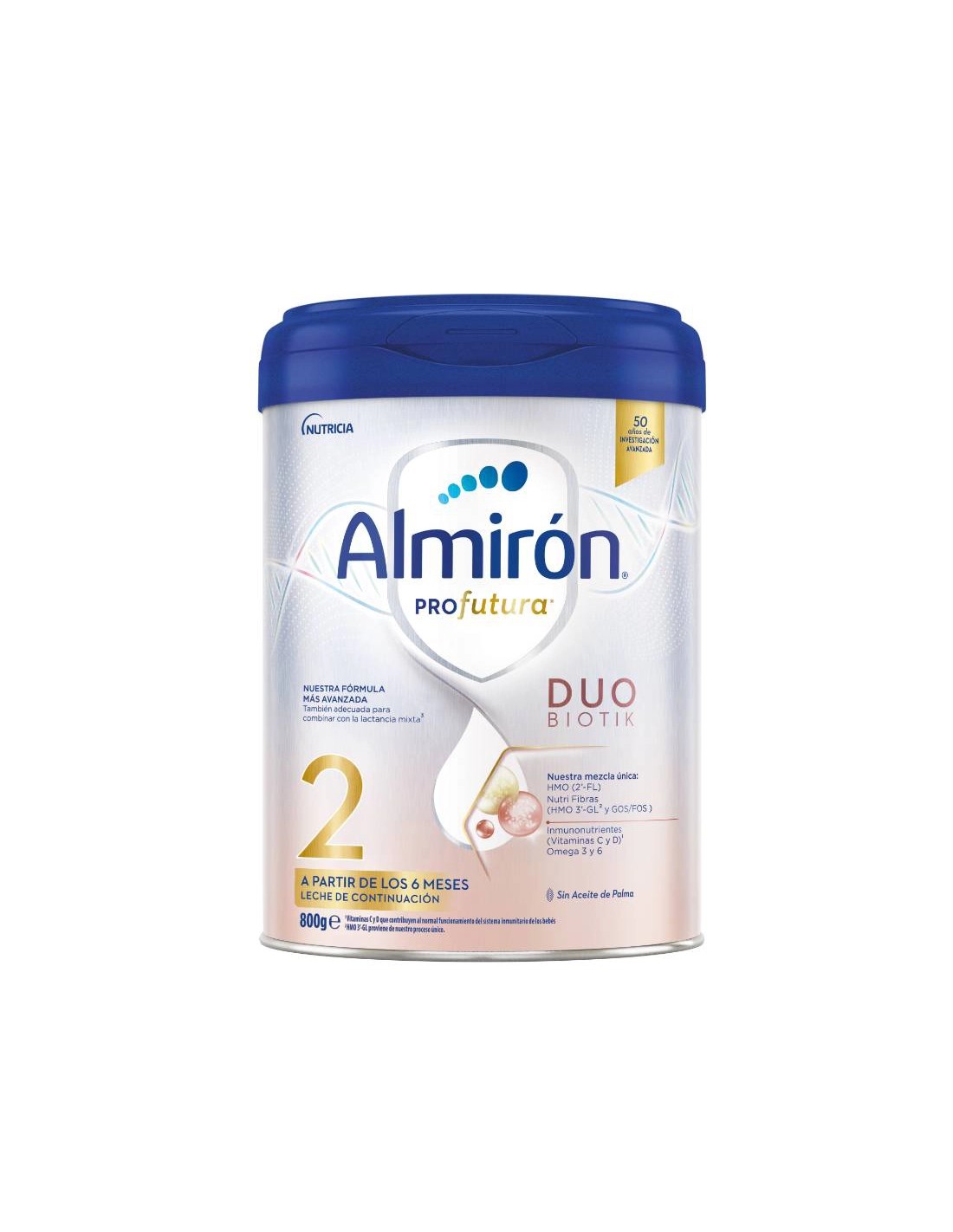 ALMIRON Profutura 2 Duobiotik debe utilizarse como complemento de la leche materna o como sustituto de la misma, siempre bajo la recomendación de un pediatra. Seguir cuidadosamente las instrucciones de preparación y conservación indicadas en el envase. No dejar el biberón a temperatura ambiente durante más de una hora. No reutilizar la leche sobrante. Mantener el envase cerrado y en un lugar fresco y seco. No utilizar si el envase está dañado. Mantener fuera del alcance de los niños.