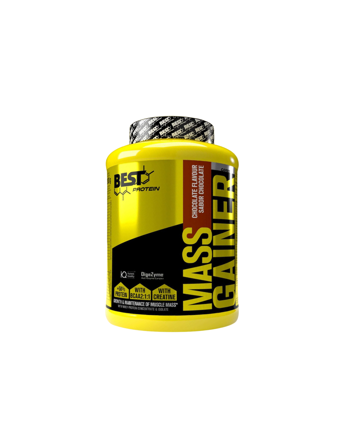 BEST Mass Gainer Sabor Chocolate contiene una mezcla óptima de proteínas (aislado y concentrado de suero de leche), aminoácidos (Kyowa Quality® entre ellos), hidratos de carbono y creatina, MCT, ZMA, enzimas digestivas (DigZyme®), entre otros componentes, que maximizará el ambiente anabólico y favorecerá la recuperación, mantenimiento y desarrollo muscular.