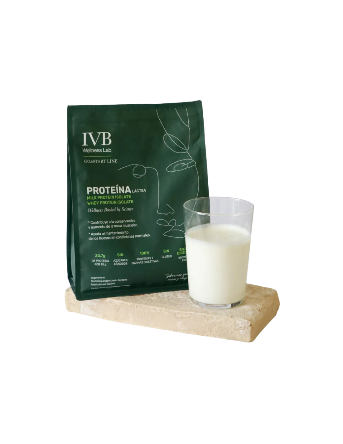 IVB Proteína Láctea es un suplemento alimenticio en polvo a base de aislado de proteína de leche (MPI) de origen francés y aislado de proteína de suero (WPI) de origen italiano, diseñado para optimizar la ingesta proteica diaria sin aditivos innecesarios como azúcar, maltodextrina o espesantes. Esta proteína de alta calidad ofrece 20,7g de proteínas por dosis (25g), con enzimas digestivas como lactasa, bromelaína y papaína para una mejor asimilación y digestión suave, apta para intolerantes a la lactosa (menos de 0,7g por ración) y libre de gluten. Ideal para deportistas, personas activas o adultos mayores que buscan mantener masa muscular, salud ósea y recuperación post-ejercicio, contribuye a la síntesis proteica eficiente y saciedad prolongada.