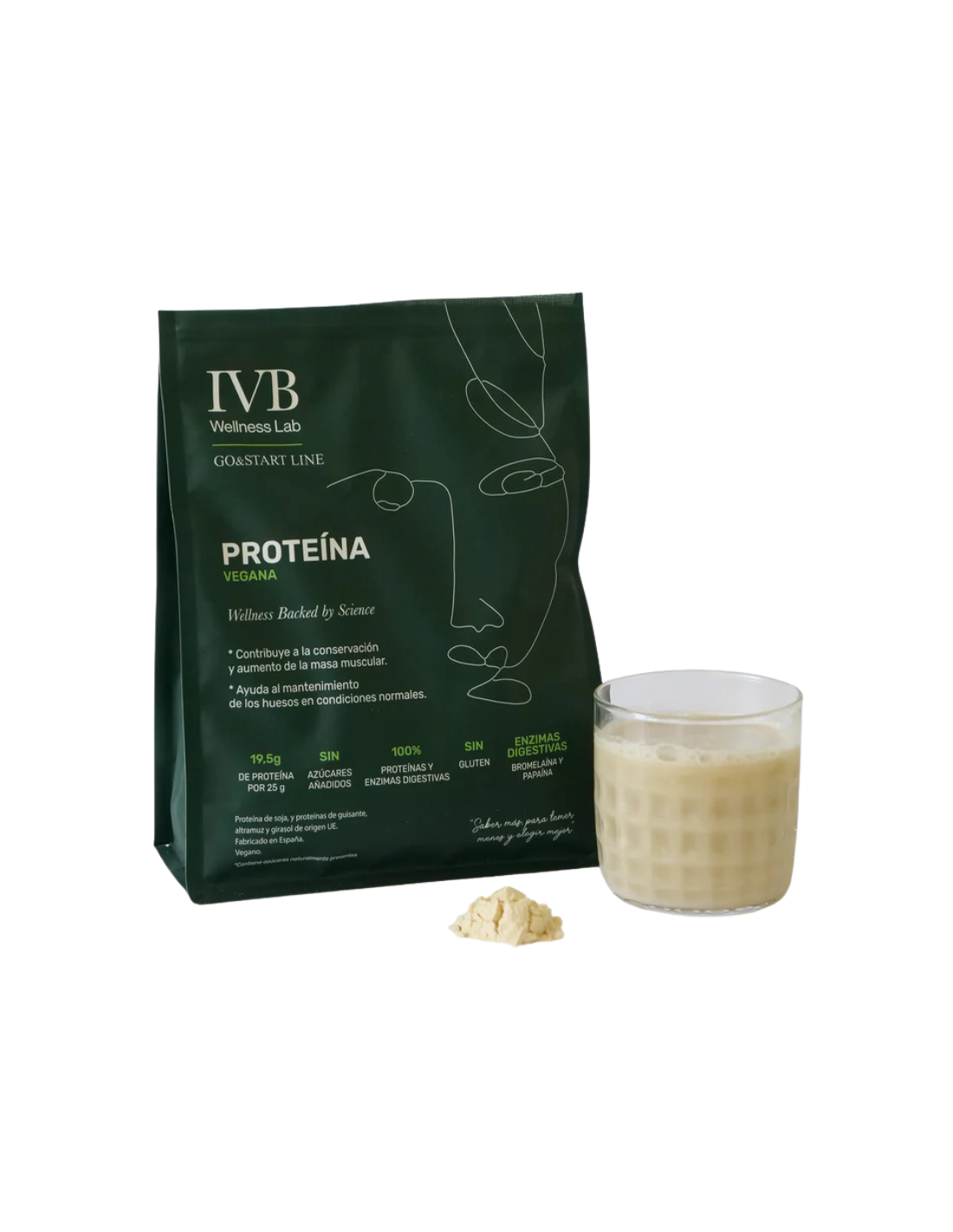 IVB Proteína Vegana incluye aislado de proteína de soja (VEGACON®), aislado de proteína de guisante (PISANE™), aislado de proteína de altramuz, aislado de proteína de semilla de girasol (VARIOPLANT®), bromelaína (Ananas sativus) y papaína (Carica papaya).