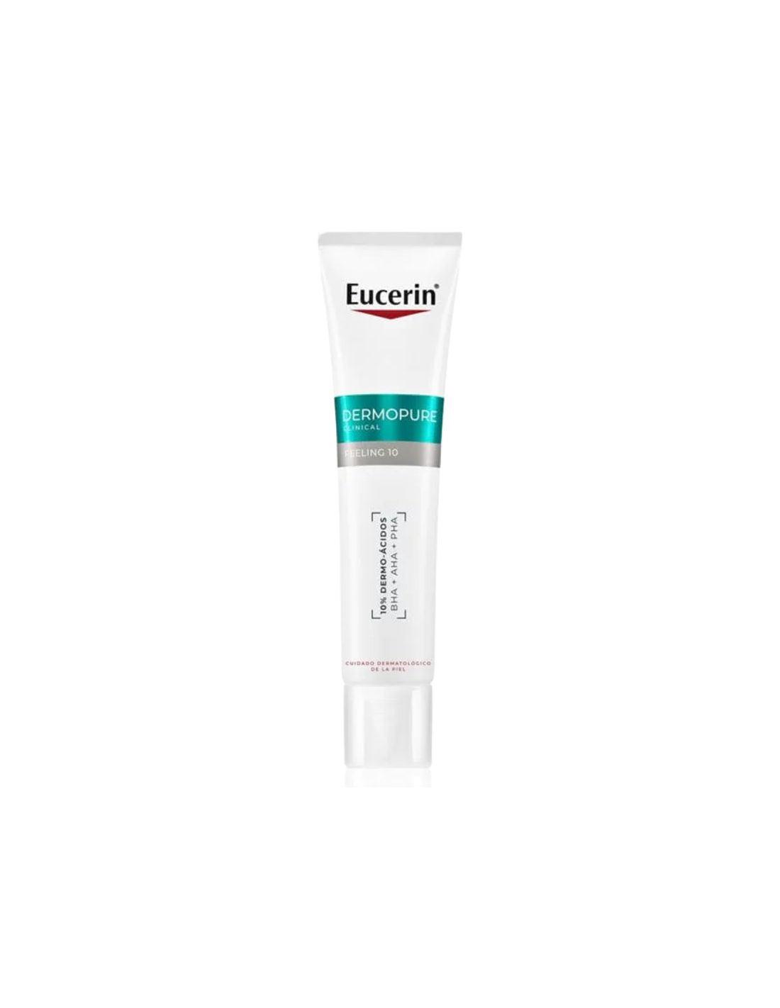 EUCERIN Dermopure Clinical Peeling 10 es un exfoliante facial intensivo formulado para pieles grasas, mixtas o con tendencia acneica, ideal para adolescentes y adultos que buscan reducir imperfecciones, puntos negros y poros obstruidos. Este peeling elimina células muertas, desobstruye los poros y refina la textura de la piel, promoviendo una apariencia más clara, suave y uniforme. Su fórmula minimiza las irritaciones y ayuda a prevenir brotes de acné, siendo un complemento perfecto para la rutina de cuidado facial. Este producto es ideal para un tratamiento nocturno semanal, para una piel más saludable y radiante.