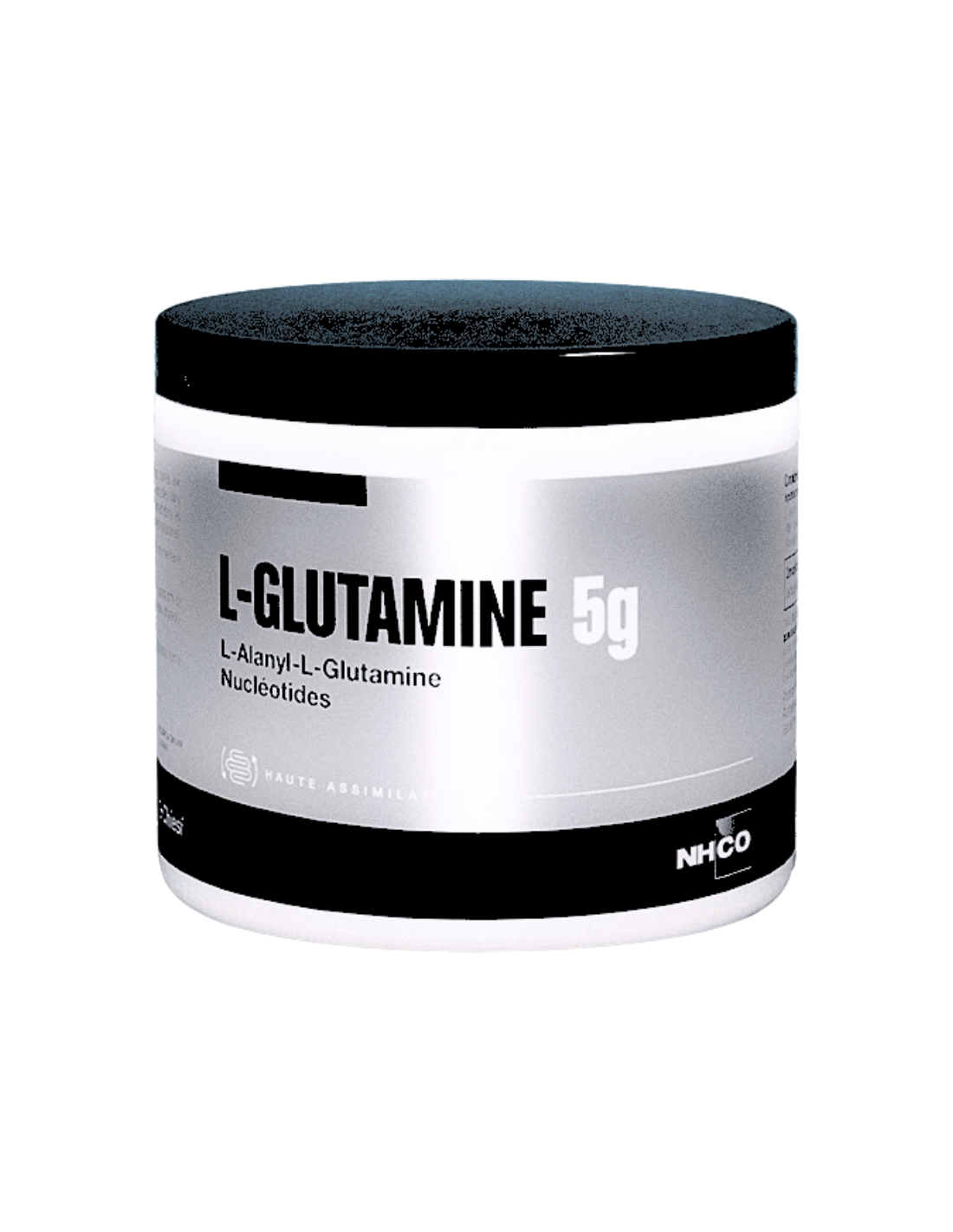 NHCO L-Glutamine 5 incluye por porción (6,8 g): L-Glutamina 4500 mg, L-alanil-L-glutamina 500 mg de los cuales L-glutamina 300 mg, Nucleótidos 115 mg, Vitamina B6 4 mg.