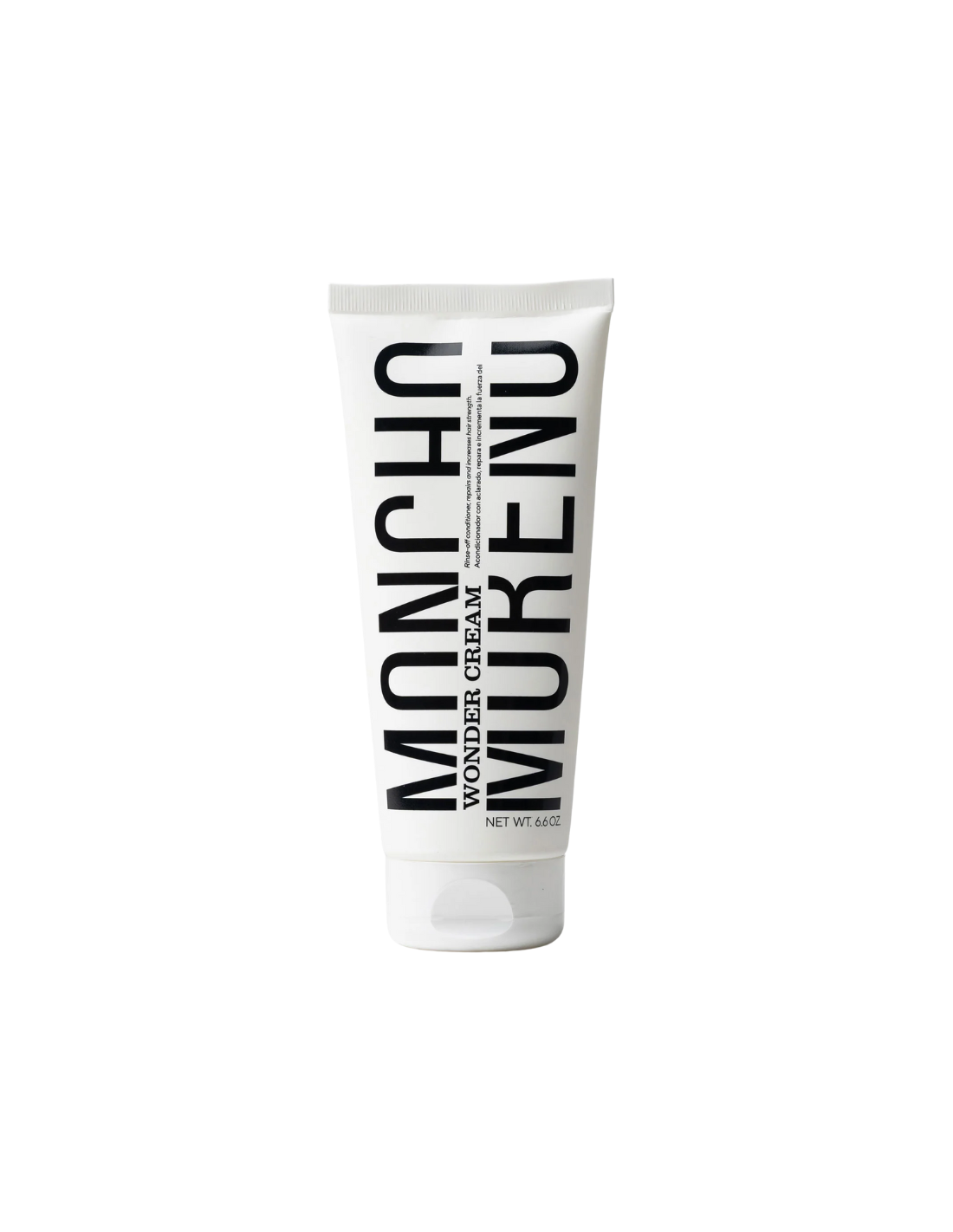 MONCHO MORENO Wonder Cream es un acondicionador reparador con aclarado de alta calidad, diseñado para restaurar y fortalecer el cabello dañado, ideal para adultos con cabellos tratados, teñidos o expuestos a calor que buscan un producto profesional que repare la fibra capilar, incremente su fuerza y deje un acabado suave y brillante. Reconstruye los enlaces internos del cabello, hidrata profundamente y protege contra el frizz y la rotura, siendo perfecta para rutinas de cuidado capilar que priorizan la reparación y el fortalecimiento sin apelmazar. Con su textura cremosa y fácil de enjuagar, Wonder Cream transforma el cabello débil en uno resistente, elástico y lleno de vitalidad, integrándose fácilmente en el lavado semanal para un cabello sano, fuerte y con movimiento natural.