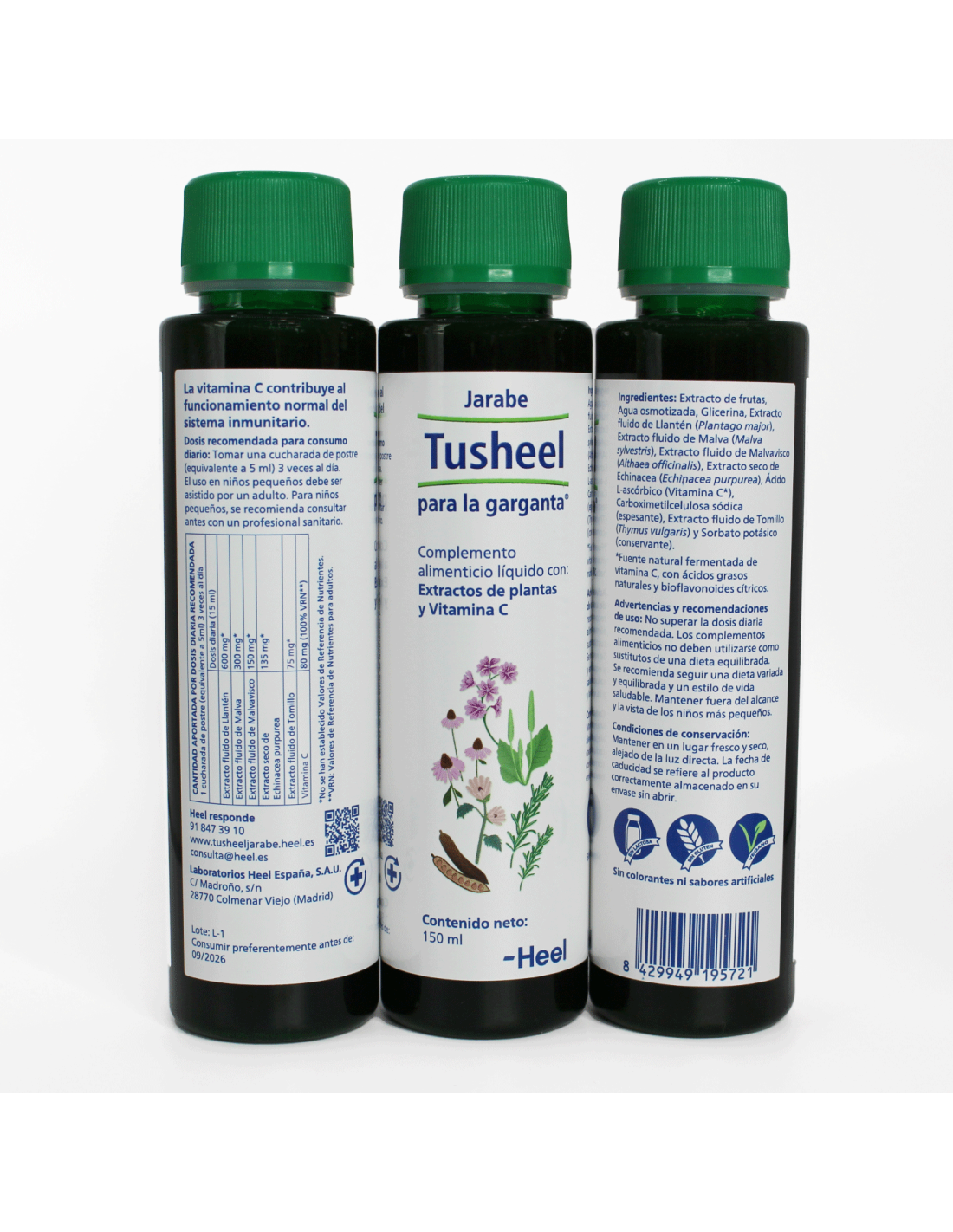 Tusheel Jarabe para la Garganta es un complemento alimenticio útil en caso de cualquier tipo de tos asociada a infecciones, alergias, la provocada como consecuencia de la contaminación ambiental o por contacto con sustancias irritantes.