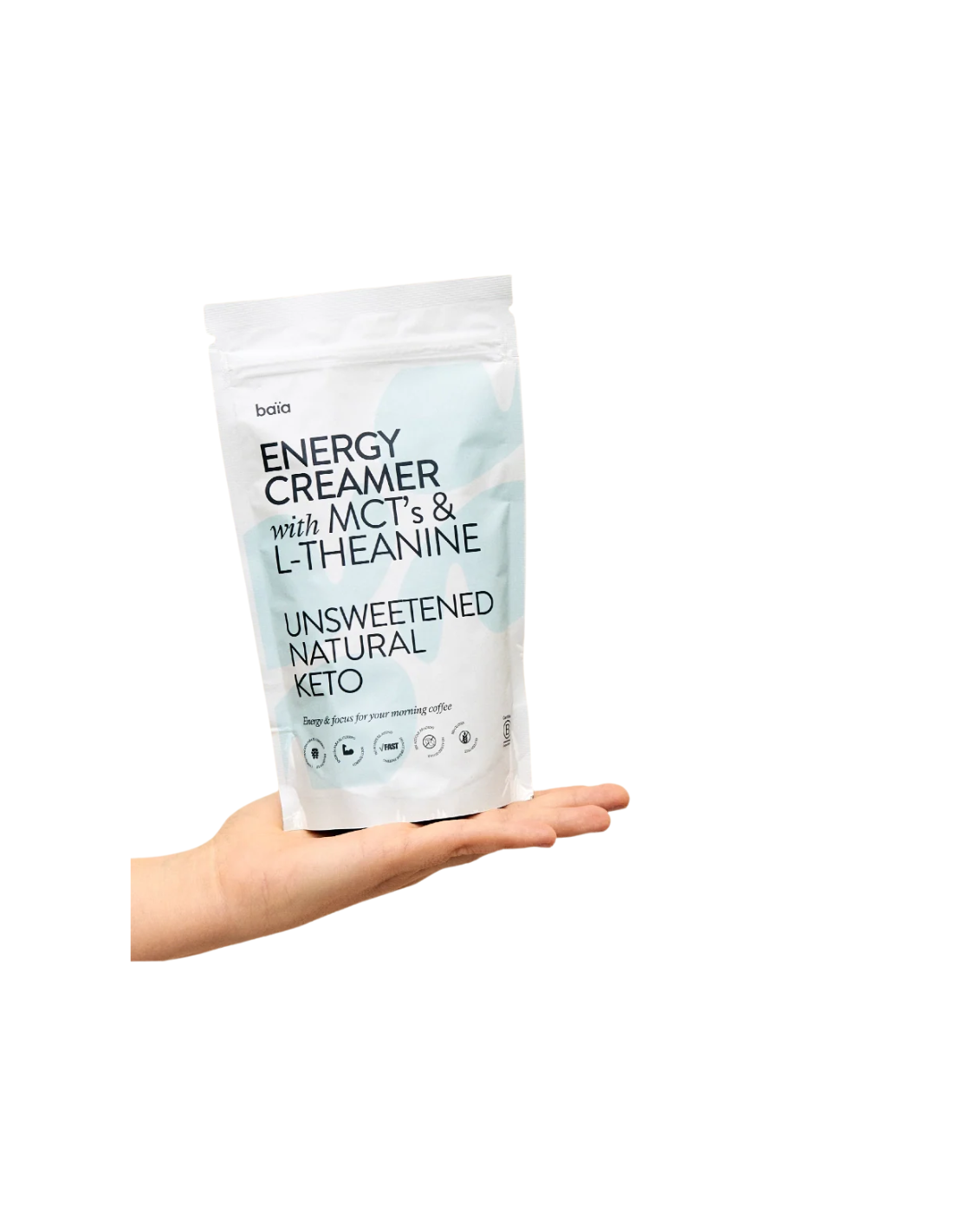 BAÏA Energy Creamer Neutro es un suplemento en polvo diseñado para optimizar el rendimiento cognitivo y proporcionar una fuente de energía inmediata y sostenida a través de las grasas. Formulado específicamente para integrarse en tu rutina diaria, ayuda a mejorar la concentración, el enfoque mental y la claridad, evitando los picos y caídas de energía asociados al consumo de azúcares. Es el aliado perfecto para personas con un estilo de vida exigente, estudiantes o profesionales que buscan potenciar su productividad sin alterar el sabor de su bebida favorita. Al ser una opción neutra, es ideal para quienes siguen dietas cetogénicas o protocolos de ayuno intermitente, ya que ayuda a entrar en cetosis y sacia, permitiendo un estado de alerta mental superior durante toda la jornada.