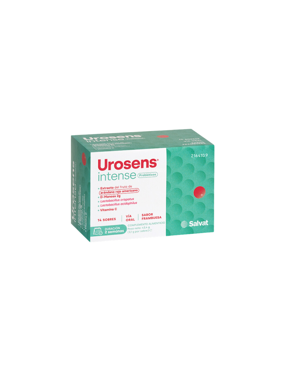 UROSENS Intense Sabor Frambuesa contiene una cuidadosa selección de ingredientes activos que trabajan sinérgicamente para apoyar la salud del tracto urinario. Su fórmula incluye D-manosa, conocida por su capacidad para inhibir la adhesión de bacterias a las paredes del tracto urinario, y extracto de arándano rojo americano, rico en proantocianidinas (PAC) que también ayudan a reducir la proliferación bacteriana. Además, contiene vitamina C, que contribuye al funcionamiento normal del sistema inmunológico, y prebióticos que apoyan la salud intestinal y, por ende, la salud urinaria. El producto está libre de azúcares añadidos y conservantes artificiales, asegurando una ingesta saludable y natural.