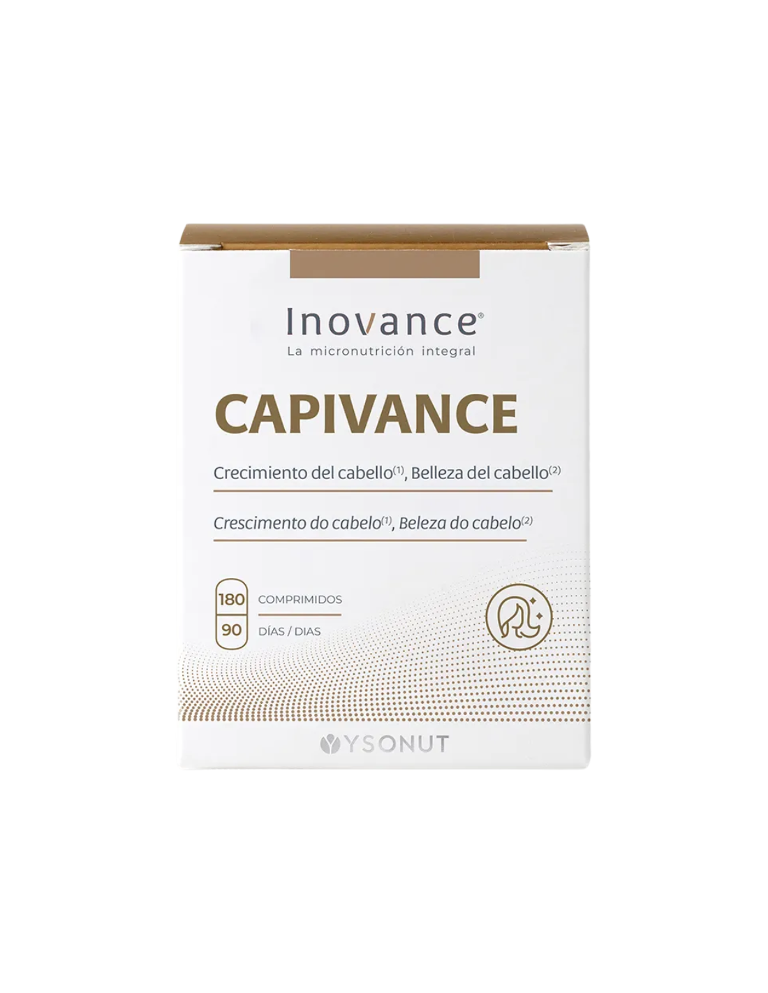 Inovance Capivance Comprimidos es un complemento alimenticio premium formulado para fortalecer la estructura capilar y ungueal, reducir la caída y mejorar el crecimiento desde el interior. Contribuye al mantenimiento normal del cabello y las uñas, protegiendo contra el estrés oxidativo y favoreciendo la síntesis de queratina. Ideal para personas con cabello débil, quebradizo o uñas frágiles debido a estrés, dietas o cambios hormonales, ofrece resultados visibles en fuerza, brillo y resistencia tras meses de uso. Este suplemento capilar se integra fácilmente en rutinas diarias para un cabello voluminoso y uñas saludables, con alta tolerancia y pureza certificada.